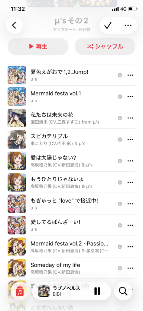 最近ラブライブμ’sのアルバムをiTunes Storeで買いそろえた。前回5つ買ったので今回は「夏色えがおで1,2,Jump!」から6つとソロ曲を3人分。